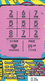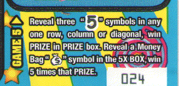 - Game 4 - 2 Ways to win ... 1) Reveal three "5" symbols in any one row |